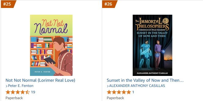 I’m always excited when my books make it into the top 50 lists and last month Not Not Normal crept back into Amazon’s top 25 for gay teen youth novels.